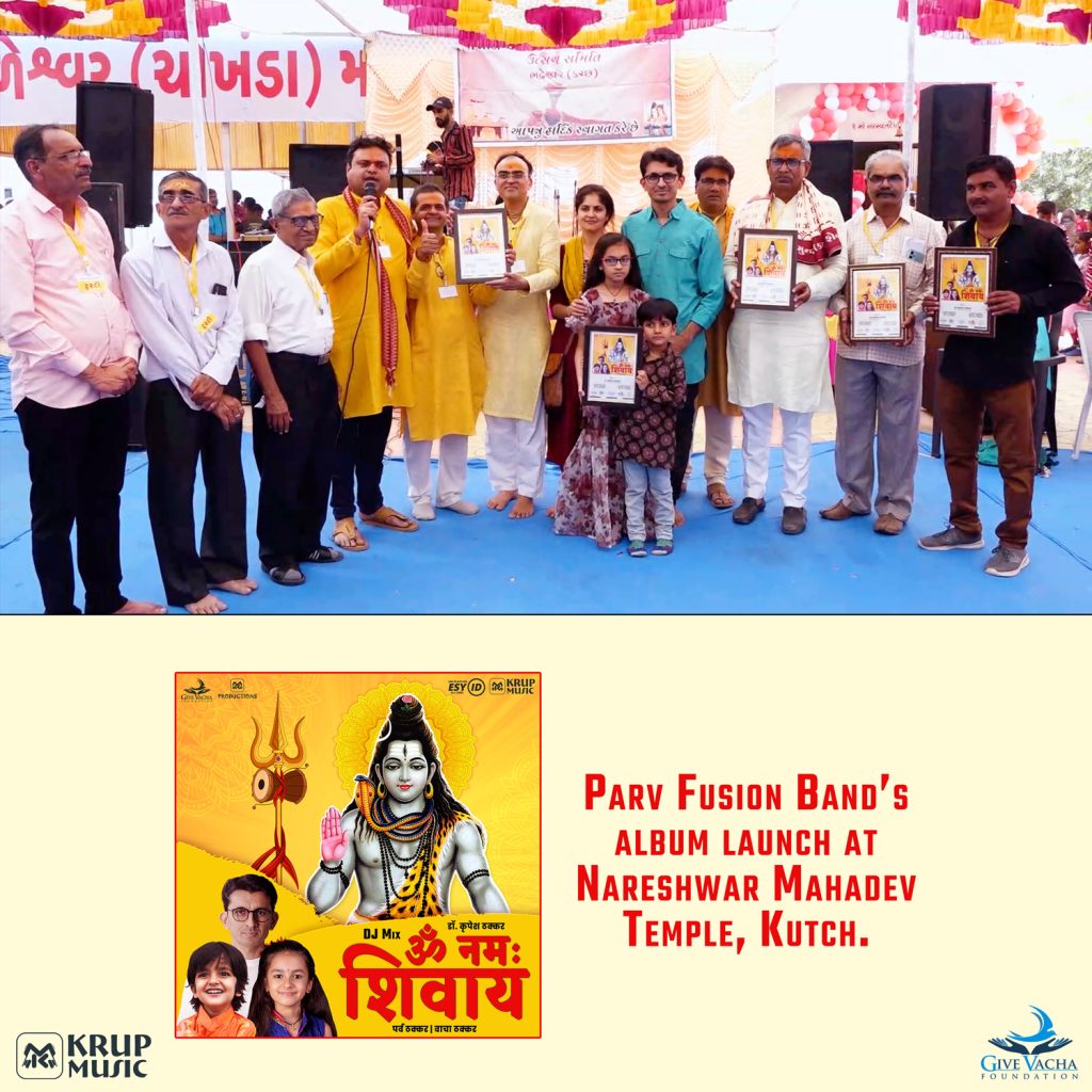 હાલમાં જ મહાશિવરાત્રી ના રોજ અંજાર સ્થિત ‘ગિવ વાચા ફાઉન્ડેશન’ દ્વારા મહાશિવરાત્રી પર્વ ની ઉજવણી કરવામાં આવી; જેમાં ભદ્રેશ્વર ચોખંડા મહાદેવ મંદિર ખાતે આમંત્રિત મહાનુભાવોના હસ્તે પર્વ ફ્યુઝન બેન્ડના ‘ઓમ નમઃ શિવાય- ડીજે મિક્ષ’ ભક્તિ ગીતનું લોકાર્પણ થયું.