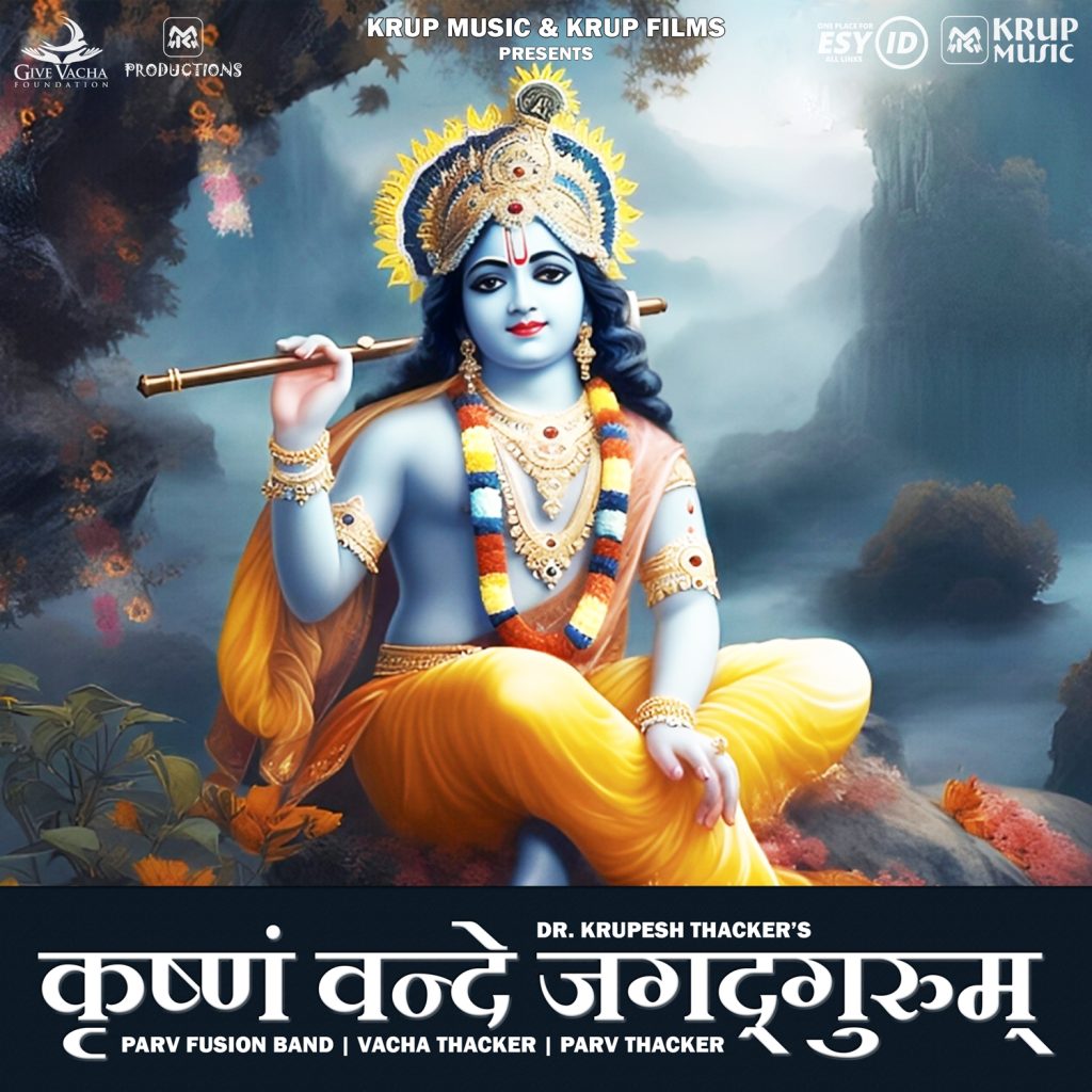 “Krishnam Vande Jagadgurum” by Dr. Krupesh Thacker, Parv Thacker & Vacha Thacker (Parv Fusion Band). It is from the film ‘Main Bhi Arjun: Parv‘, 1st film of ‘Main Bhi Arjun Universe‘ movie series. It is also a part of the album “Krishnam Vande Jagadgurum“. The movie is produced by Nayna Thacker, Dr. Shashikant Thacker & Dr. Pooja Thacker. It is directed by Dr. Krupesh Thacker. The song was released by Krup Music Record Label & Esy Music. Give Vacha Foundation is the NGO partner.